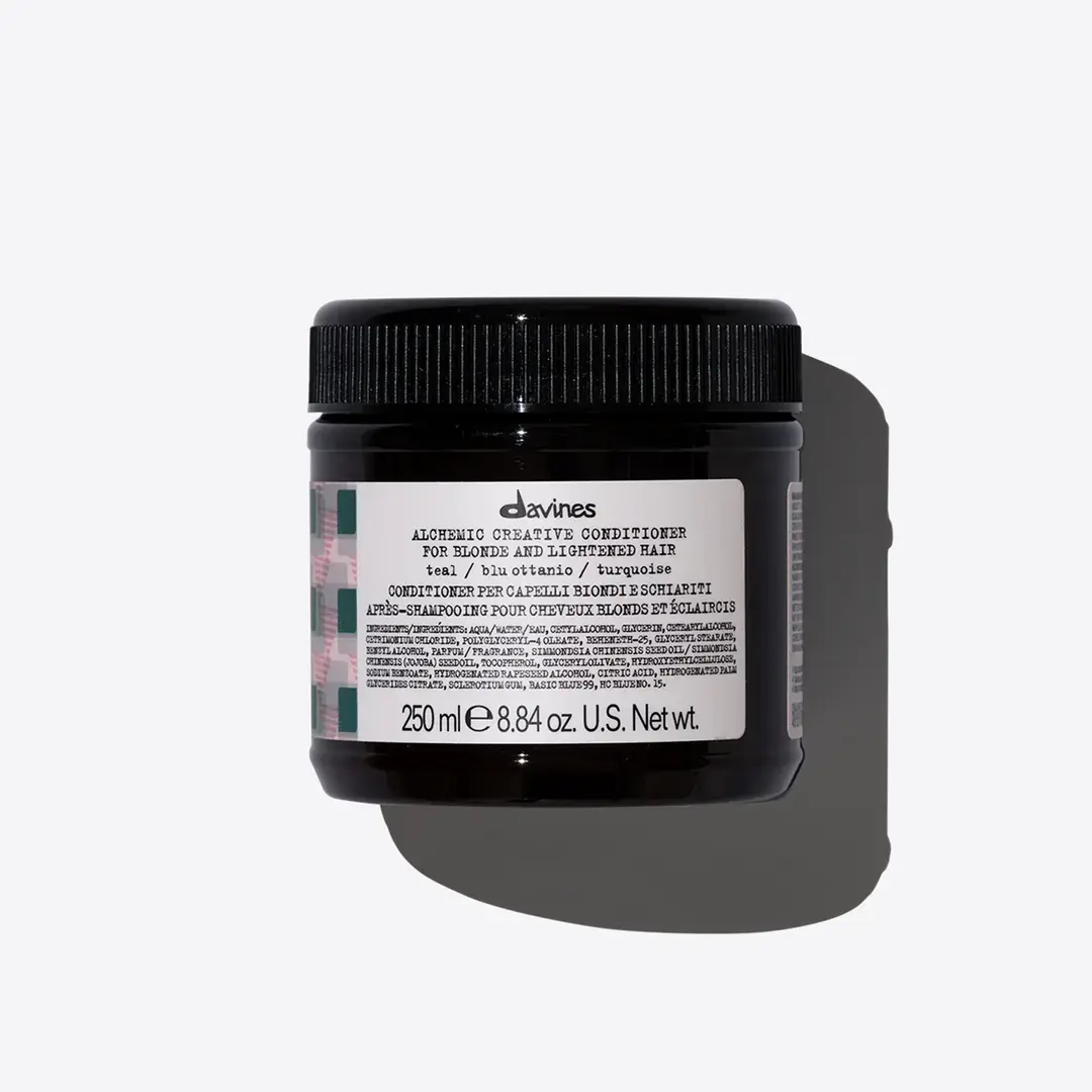 Кондиционер ALCHEMIC создает креативный оттенок морской волны на волосах.